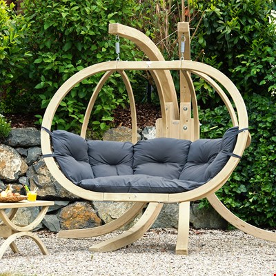 Offering space for 2 people, the Globo Royal Hanging Chair & Stand by Amazonas is the most extraordinarily comfortable chair. Handmade with a unique wooden frame, paired with the matching stand, it is the ideal place to relax out in the garden! The Globo Royal Chair is equipped with a large, plush anthracite grey cushion designed with a detachable and washable cover for quick and simple maintenance and with a weatherproof cover available your hanging chair can remain outside come rain or shine. Available as a double or a single size and in a choice of gorgeous colours, all of the family can sit in style!