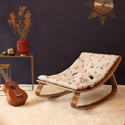 This delightful Levo Baby Rocker in Beech Wood with Rose in April Fawn Cushion by Charlie Crane has quite simply taken our breath away here at Cuckooland. It is just gorgeous! We all want one; even those of us who don’t have babies! The rocker follows your baby’s own natural movements, encouraging him or her to actively bounce rather than other models out there on the market that mechanically and regimentally rock baby, whether they want to move or not! Intended for little ones from birth until they are around 7 months old, this super stylish and exceptionally crafted rocking chair is a must have nursery room accessory! With 100% Cotton fabric cushions that come in other fabulous prints exclusively designed for Charlie Crane by Parisian artists, and a varnished wood finish, the Levo Baby Rocker is a thing of pure beauty! The tough decision is which one will you choose?!