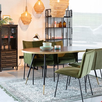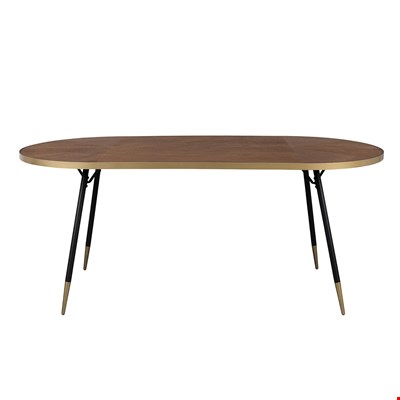 Give your dining room a spruce up with the Denise Oval Dining Table, the perfect centerpiece. Not only does a dining table have to be practical, it has to look good right? In a beautiful walnut coloured finish and gold edging detail, this beauty of a table will look stunning wherever it is placed. Whether entertaining guests or enjoying family night with a board game or two, the retro styling of this table will be a welcome addition. With other pieces available in the Denise collection, why not create a coordinating look throughout your home.