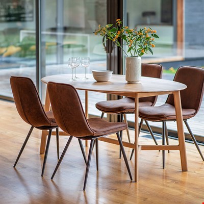 Give your dining room the attention it deserves with this Toarmina Oval Dining Table. Made using a light solid oak and a beautiful mid-century crafted frame, this table certainly produces a welcoming vibe to sit down at. The distinctive shape allows it to look appealing just about anywhere, whether it's a formal setting, a causal décor, a small room, or a large space. With other pieces available from the Toarmina collection, your home will soon look the part in no time.