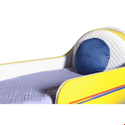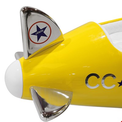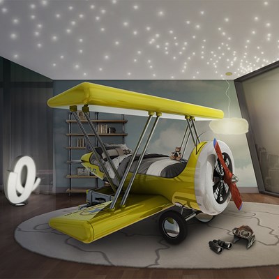 Bring a little aviation inspired magic to your little pilot's bedroom with this amazing Sky B Plane Junior Bed and they'll be soaring off for aeronautical adventures - up, up and away! The price reflects the quality- the workmanship is off the charts - absolutely one of a kind extraordinary! Let the flying lessons begin... who will be their instructor, Stuart Little would be ideal! With a creative and playful design, the Sky B Plane makes the transition into a junior bed an exciting and uplifting experience, the decorative suitcases allow easy climbing up and down the airplane and double up as handy storage compartments, ideal for stowing away willing passengers (teddies not siblings!). Made from fibreglass in a glossy yellow varnish, it has stainless steel and veneered wood finish to the details. Additional secret storage is included on both sides of the bottom wing and in the staircase, the top wing also doubles as a shelf. This unique bed is made to order, please allow up to 14 weeks for delivery.