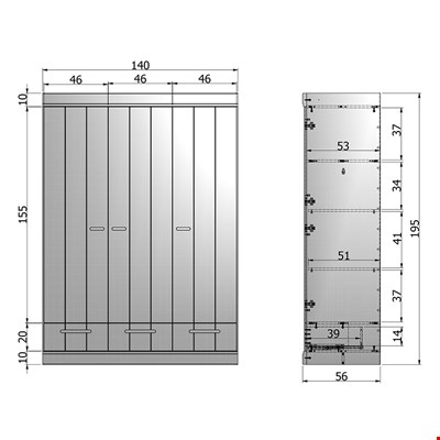 - Dimensions: Height 195cm Width 140cm Depth 53cm