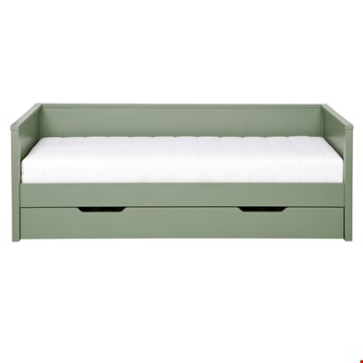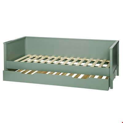 Take your naps to the next level with this gorgeous Nikki Day Bed in Army Green. Use it in the living room as a contemporary sofa that will double as a guest bed, better yet use it for yourself to relax on those lazy Sundays! The high quality, responsibly sourced FSC® wood makes it stylish, practical and sleek whilst the optional trundle drawer gives you that added bit of storage. A great piece of furniture for the kids to relax on during movie nights. The Nikki collection from Woood has matching wardrobe, desk and bedside cabinet. This bed comes as standard with one set of slats for the top bed, if you are buying the additional trundle drawer it comes with a solid base, however, if you're planning on using the trundle long term as a second bed, we'd recommend that you purchase an additional set of slats for support.