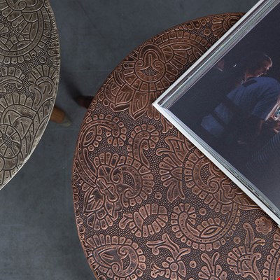 Dutchbone have taken the techniques used by their impeccable wood-carvers in the Dunbar region of India, and transferred their beautiful, ancient patterns onto metal Bast Side Table! This piece of furniture is available in a choice of Copper or Brass finish, these stunning hand-embossed tables are a unique way to bring interior design trends from around the world into your home - metallics, check, tribal embossed print, check, and dip-dyed furniture feet, check! The Bast Side Table even mixes man-made and natural materials, as the main table is made from solid Sheesham wood, with an embossed steel sheet laid over the table top. Could this table be any more on-trend?
