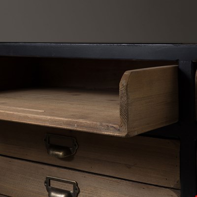 Papers, papers and even more papers. The Sol Sideboard from Dutchbone will cherish them all for you. 3 large double drawers, 3 small drawers and 3 open drawers on top, meaning you'll never run out of storage in this classic piece of furniture. Perfect for the office or in the lounge, this storage cabinet will add an vintage feel wherever it is placed.