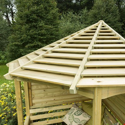 Create a relaxing escape with the Forest Garden Venetian Corner Arbour. Perfect for updating an unused corner of the garden, this striking addition will transform your outside space. The gorgeous slatted roof has been designed to keep unexpected showers out and let light stream into your structure. Paired with 2 solid sides, made from sturdy 12mm tongue and groove panels, you'll be well protected in windier weather and you'll have plenty or privacy while admiring your surroundings! With enough space for 4 people to sit comfortably, it would be the perfect spot for entertaining, or you could just keep it all to yourself and catch up on your favourite read! Made from responsibly sourced and slow grown timber, the arbour has been pressure treated to protect against rot and decay. Although painting and staining isn't required, you can paint in your favourite shade and brighten up your garden or leave the natural wood exposed without worry!