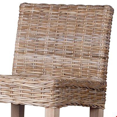 - Features woven rattan seat