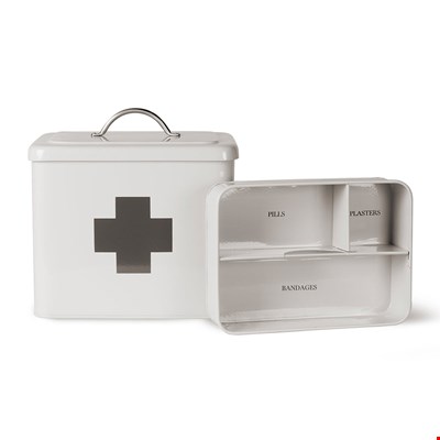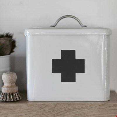 Every house needs a first aid kit and where better to store it than the First Aid Box from Garden Trading. Finished in a clean, chalk white finish with a cross design on the side, the simple style will look great sat on a shelf or tidy it away in the cupboard ready to grab when you should need it. Complete with an inner tray with compartments and labels finding what you need will be easy, whilst larger items can be placed beneath.
