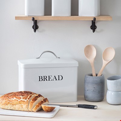 Keep your bread fresh in the Metal Bread Bin from Garden Trading and leave your counter top looking neat and tidy. With it's retro styling it is sure to look good in your kitchen and with three colours available there is sure to be the perfect option to suit your interior style. Including a matching lid and wording on the side, this bread bin would make a wonderful addition to any home.