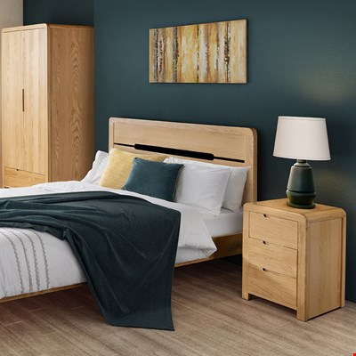 A perfect addition to your bedroom the Curve Bedside Table from Julian Bowen will be the perfect place to store all of those late-night essentials. Crafted from solid white oak and oak veneers this understated design with its gentle curves and recessed handles will fit seamlessly into any decor. Store your latest page-turner or nighttime lotions and potions in one of the three handy drawers and have everything within easy reach.