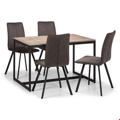 Dine in style with the Tribeca Dining Set with 4 Monroe Chairs from Julian Bowen and add some contemporary style to your home. The Sonoma oak effect table top paired with the metal frame will bring a stylish yet industrial feel. The charcoal grey upholstered chairs with slender steel legs feature a high back offering up plenty of support, allowing you to relax long after the food has gone. Perfect in the dining room or as a kitchen table, with room enough to seat 4, enjoy a night in with the girls or some quality time with the family around this beauty. Available in other configurations, there's a Tribeca set to suit your space!