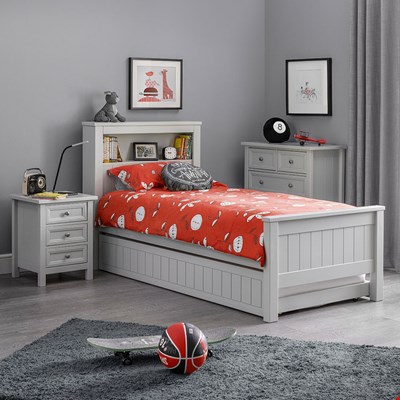 The perfect bed for any budding reader, with the Maine Bookcase Bed from Julian Bowen you can keep all your favourite books close to hand. Manufactured from MDF, the beautiful panelling detail of this Bookcase Bed gives it a timeless finish that will look gorgeous in any room of the house. With two neutral colours to choose from, there will be an option to suit your space and blend seamlessly into your interior style. The headboard, featuring a shelf, is ideal for keeping that evening read within arms reach and with the option to add a trundle bed it's great for sleepovers too!
