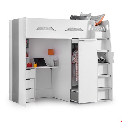The Pegasus High Sleeper from Julian Bowen is a wonderful bed for smaller bedrooms or if you're just wanting to save on floor space. Perfect for kids through to teenagers, with a built-in wardrobe and desk with drawers, they'll be able to keep their bedroom spick and span (fingers crossed!) whilst knuckling down on the homework (also fingers crossed!). Plus the hidden compartments in the ladder are great for keeping those midnight snacks. Available in a choice of colour, with silver accents, this bed will have no problem blending seamlessly into your interior.