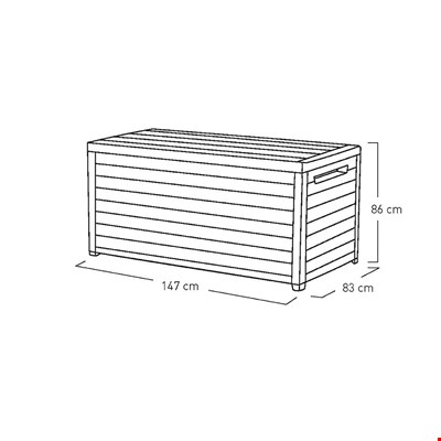 Store cushions, blankets, rugs and the occasional water pistol and pool float safely inside the Outdoor XXL Deck Storage Box from Keter. Designed from weatherproof DuoTech resin with the addition of a lockable catch, you'll be safe in the knowledge everything is well protected. Featuring handles and piston hinges, easily transport and access your chosen contents. And with a natural wood effect, this practical storage box will fit perfectly in any outdoor space!