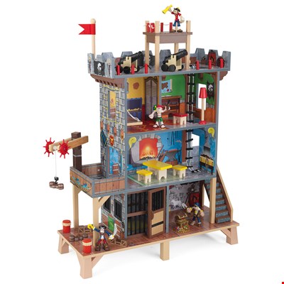 Shiver me timbers! This swashbuckling set is sure to have your kiddies singing sea-shanties at the top of their lungs! Including a castle fortress, a pirate ship and 17 play accessories, the Kidkraft Pirates Cove Play Set has it all! They'll sail off on adventures around the house and dock into port to steal the light up treasure chest! Hopefully they won't get caught red-handed, there's a jail cell for those that do and the cannons are ready and aimed! With four levels of play there's plenty for them to explore. This set certainly won't have you walking the plank!