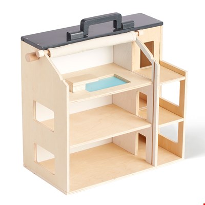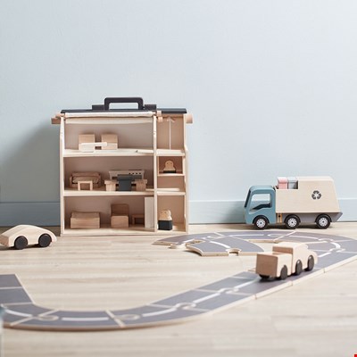For hours of make-believe fun, the Kids Concept Aiden Wooden Studio Doll House with Furniture would be a wonderful gift idea. Designed as a carry case, your little one's can transport their dolls house anywhere they please! One minute they'll be playing in their bedroom, the next in the garden - you might find it hard keeping up! Featuring 3 separate levels with a swimming pool, roll down roof terrace and a working lift, this is one snazzy pad! Including 15 accessories, your kiddies can arrange the furniture and figures in any way they'd like and create all sorts of stories. Extend playtime with the garbage truck and car track and see where their imagination takes them!