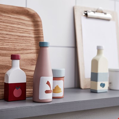 Every play kitchen needs a selection of sauces! These colourful Pantry Bottles from Kid’s Concept will extend play time, keeping your little one busy for hours. With 5 play food accessories included, they will love adding mustard, ketchup, olive oil, salad cream and vinegar to all of their make-believe meals! Add this quirky collection to the Kid’s Concept Play Kitchen and see what they conjur up!