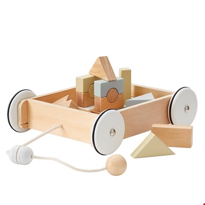 - Wooden pull along wagon with building blocks included