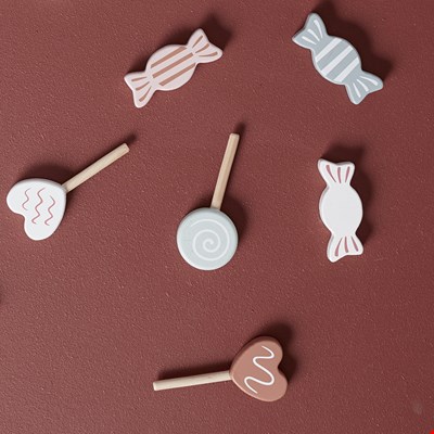 The Kids Concept Wooden Bistro Candy Set almost looks good enough to eat! With a cute stripey bag bursting full of 15 sweet treats all in a variety of fun shapes and designs your little one can have all the fun of pick and mix at home. Team with other sweet treats from the Bistro collection to create a little candy store right in the playroom.