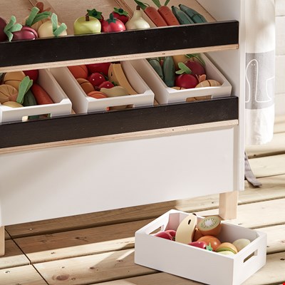 Guaranteed to be the only vegetables your little one will be happy to see! The Kids Concept Wooden Bistro Mixed Vegetable Box will be a great addition to the playroom. With everything from carrots to tomatoes all stored in a gorgeous wooden crate, they will inspire hours of fun and creative role-play.