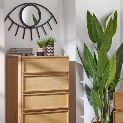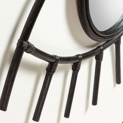 It will be love at first sight when you set eyes on the Maela Black Wall Mirror from La Forma. Handcrafted from rattan in the shape of an eye with a sleek black painted finish this mirror will be a statement on any wall it is hung on. With a large round circular mirror to the middle, it will be perfect in the hallway for checking yourself out on the way out the door. You could pop this in your bedroom as a great design feature, perfect for when you're getting ready too. Why not team with the smaller Maela mirror in natural to create an eye-catching look!