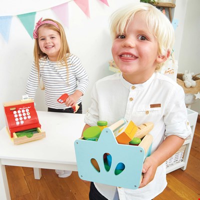 Get your little one's involved in the weekly shopping with the Le Toy Van Grocery Set & Scanner! Including 13 play food accessories and a wooden shopping basket, they'll love playing shop with their friends. And with a set of barcode stickers and a scanner, be prepared to hear lots of 'beeping' noises coming from their bedroom! Although it won't be long before they're helping you pack the grocery bags so just consider it training! Part of the Honeybake collection, add the market stall, cash register and play money set to extend playtime even further and encourage social play.