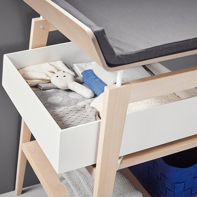 This Linea Changing Table with Foam Mat in Beech by luxury nursery furniture designer Leander is just one of the fabulous products we are delighted to add to the Cuckooland nest. Designed and made in Denmark, these quality innovative pieces add a touch of class to any child's bedroom. Linea means line. The collection reflects its name with clean sharp lines and an edgy urban feel yet still remaining feminine, sophisticated and soft. Whilst changing a baby's nappy, you are given precious quality time to spend with your little one. The Changing Table is a place for cuddles, giggles, heart melting and making memories. And let's face it, anything that can make the not-so-pleasant job of bottom wiping more bearable is money well spent! Part of the Linea nursery range, this contemporary changing table has safety at its core with raised sides to prevent your baby from rolling off the edges. Its height can also be adjusted so that whoever lands the task of nappy duty is able to work comfortably at an optimal height ensuring there are no aching backs (to go with the sleepless nights!) No child should ever be left unattended on a changing table, so the handy shelves have been designed to allow you to easily reach all essential bits and bobs you might need without having to leave the baby changing zone! Leander's aim is to create furniture that challenges materials and makes a difference to children and their parents; an ethos we, here at Cuckooland, wholeheartedly embrace.