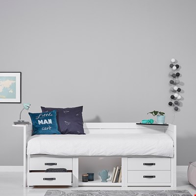 - The storage can be replaced with a trundle drawer which can be used as an extra bed (using the storage as a separate piece of furniture)