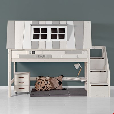 The Adventure Hangout Mid Sleeper Bed with Steps from Lifetime will be your kiddies' very own little home away from home. With a closed roof style hideaway featuring an opening window, they'll love playing make-believe whilst watching the world go by. Complete with steps for your youngster to get to the bed, not only are they fun but also practical! With storage in each step plus shelving at the side, it's perfect for storing their bits and bobs.