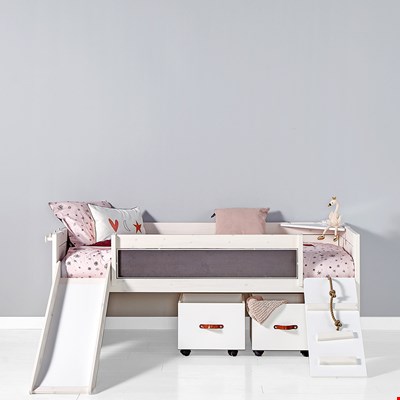 Bring the playground right into your kiddies bedroom with the Climb & Slide Kids Bed from Lifetime. Not only is this bed perfect for sleeping, oh no! Featuring a climbing ramp and rope, you should have no trouble getting your youngster into bed at bedtime. Plus, with a slide, they can start their day whizzing into a day filled with fun. What's more, with a chalkboard front, let your little one draw, doodle and scribble all over it to personalise their space. Beautifully manufactured from solid pine and handcrafted in Denmark, this mid sleeper will see your kid through childhood and beyond.