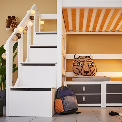 The High Sleeper with Steps from Lifetime is ideal if you're after plenty of storage space! Featuring a set of 6 drawers beneath with chalkboard fronts, let your youngster doodle to decorate it how they like! Drawing pictures, inspiring quotes or you could even write little messages. Plus, this handy cabinet can add some extra seating and double up as a bench. With steps at the side for your kiddie to get into bed not only are they fun but also practical! With storage in each step plus shelving at the side, it's perfect for storing their bits and bobs.