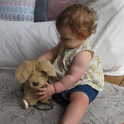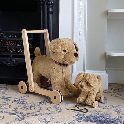 Your little one is going to love Dexter Dog from Little Bird Told Me! Including a pull string and wooden wheels, this brilliant toy will support your little one when learning to walk. It won't be long before they're pottering around the house with their Dexter Dog companion trailing behind. Covered with luxuriously soft fabrics, this little pooch loves to play, go for walkies, receive lots of cuddles and thankfully he won’t make any messes along the way! Helping to develop sensory skills and self-expression, his scrunchy crinkle filled ears provide tactile stimulation for your little one, extending their playtime. After a long day of exploring together; this fluffy fellow also features detachable wheels, transforming Dexter from a pull along to a soft huggable playmate; simply remove both sets and let bed-time cuddles commence! With other lovely pooch pull along toys to choose from, why not get him a friend?