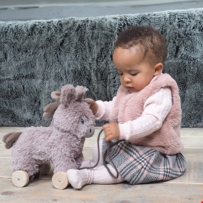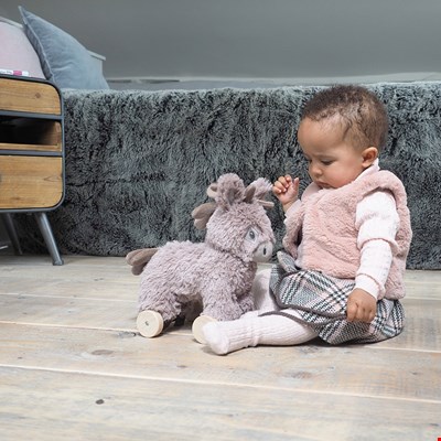 The Little Bird Told Me Norbert Donkey Pull Along Kids Toy will be an adorable gift for the little one in your life. With his soft tufted coat and pointy ears he's not only a fun pull along toy but a gorgeous huggable soft toy too, simply take off the detachable wooden wheels and he makes the perfect cuddle companion. He even has a scrunchy mane and tail for added sensory play.