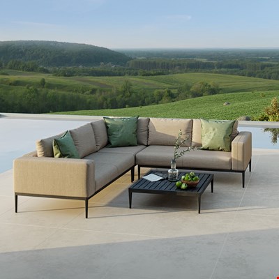 • Looking to add a glamorous touch of heat to your garden? A sofa seating area with a built-in fire pit will keep you warm and cosy all night long. The Winchester Royal U-shaped sofa set is complete with a gas-fired pit to light up your al fresco nights.