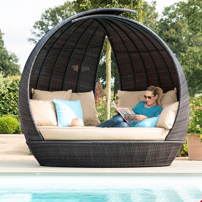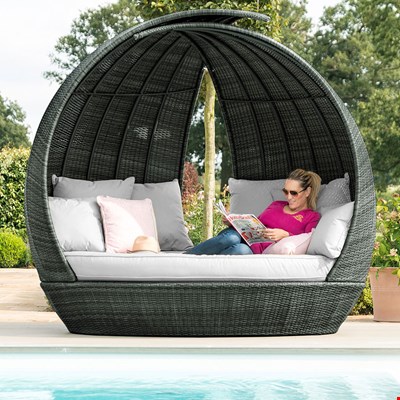 Sure to make an impact in your garden the Maze Rattan Lotus Daybed is the perfect spot to relax in the summer sun. Manufactured from the highest quality PU rattan woven onto a powder coated aluminium frame, with its unusual wrap-around design, this stunning maze rattan garden bed will be a centrepiece in your garden. The maze rattan garden day bed is available in 2 colours; brown or grey, the canopy is ideal to shade yourself from the sun. Whether it's to catch up on that latest read or to spend quality time with the other half this maze rattan daybed will be a wonderful retreat.