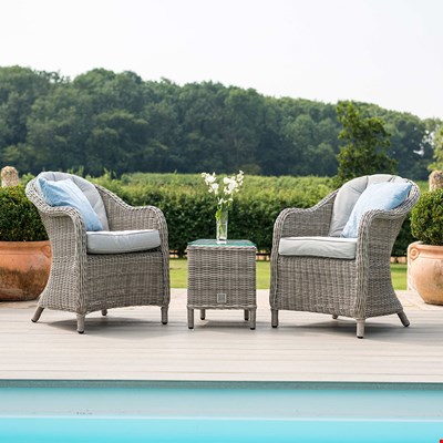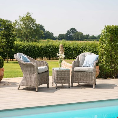 Soak up the sun and relax in the Oxford 3 Piece Lounge Set from Maze Rattan. Manufactured from the highest quality PU rattan woven onto a powder coated aluminium frame, complete with two chairs with sloping arms and comfy cushions, this set will be the perfect spot to take 5! Plus, with a glass topped side table, there's even somewhere to pop your cup of tea or that cheeky cocktail. The subtle grey weave and cushions pair beautifully together, giving a timeless finish that will last for years to come!
