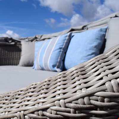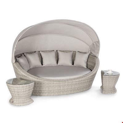 The perfect place for some well-deserved relaxation, the Oxford Outdoor Day Bed from Maze Rattan is the ultimate getaway. Manufactured from the highest quality PU rattan woven onto a powder coated aluminium frame, with a retractable hood, it's ideal for when you want a bit of shade! The subtle grey weave and cushions pair beautifully together, leaving you with an elegant spot to put your feet up. Plus with two side tables, there's even a place to pop that beverage.
