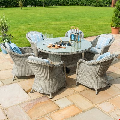 • Looking to add a glamorous touch of heat to your garden? A sofa seating area with a built-in fire pit will keep you warm and cosy all night long. The Winchester Royal U-shaped sofa set is complete with a gas-fired pit to light up your al fresco nights.