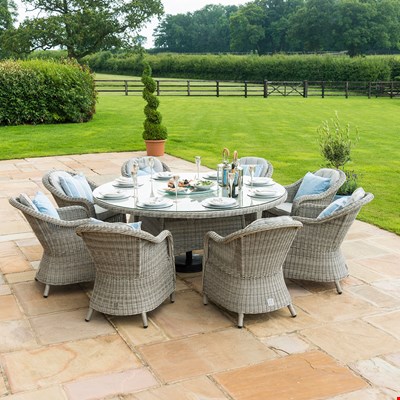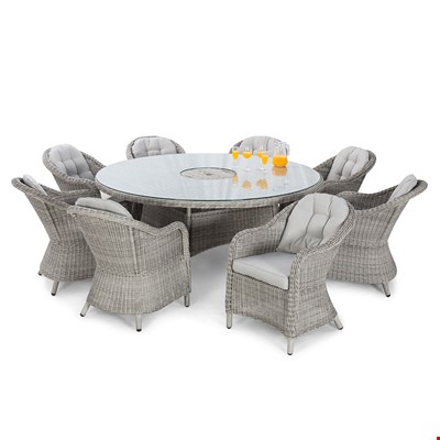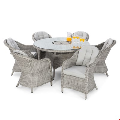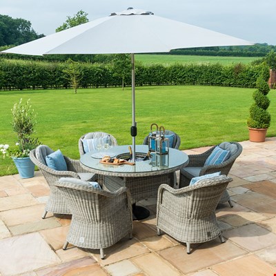The Maze Rattan Oxford Round Ice Bucket Dining Set is the perfect way to keep your beverages cold on hot summer days. Manufactured from the highest quality PU rattan woven onto a powder coated aluminium frame, it comes with an integrated ice bucket and lazy susan, catering to all your needs. So if you're hosting a party and need the prosecco chilling on ice - no problem, or a cheeky lunch with friends where you want to share the olives; this table can do both. The subtle grey weave and cushions pair beautifully together, giving a timeless finish. Perfect outside and inside - pop yours on the patio or in the conservatory!