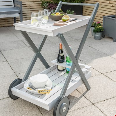 This luxury contemporary style Grigio Garden Tea Trolley from Norfolk Leisure is guaranteed to add a little wow factor to your summer get-togethers. Perfect for your afternoon tea parties, simply pop your pot of tea and selection of scones and sandwiches on this handy wheeled butler tray and join your friends and family on the lawn. Beautifully crafted from FSC 100% Eucalyptus, this sophisticated tea trolley enables easy transportation of your home-baked goodies from the kitchen to patio! Just be careful with the best china!