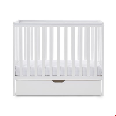 Short on space? Then the Obaby Bantam Space Saver Cot is the one for you and your newborn! Suitable from birth to 18 months and featuring a 3 position base height, simply lower the mattress as your baby gains confidence and keep them safe. Designed with teething rails, when their gnashers make an appearance they'll be protected too! And the fully slatted design means you can keep an eye on your baby while they count sheep. Available in a choice of colours, pair with a mattress, matching bedding and accessories to create a comfortable and cosy spot for snoozing. With a matching cot top changer available separately, there's no need for full-sized changing units, saving even more space in the nursery!