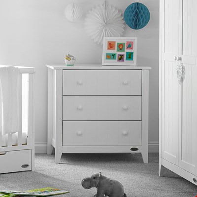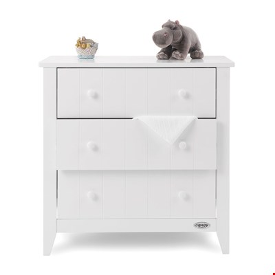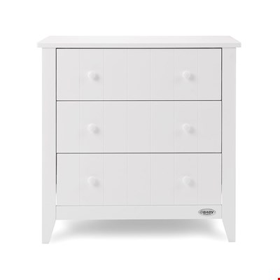 Part of the Belton collection, complete your nursery setup with the Obaby Belton Chest of Drawers. Featuring 3 full length drawers with traditional handles and smooth gliding runners; your newborns adorable outfits and nursery essentials can be neatly stored away and easily accessed when you need them! And with the option to add a multi changer top, quickly convert the dresser into a baby changing table and utilise your space. Finished in white with traditional paneling details, this unit would look gorgeous paired with matching room accessories and bedding and when they're a little older it will still be the perfect storage solution! With a matching cot bed and wardrobe available separately, or as sets, select the pieces to suite your needs!