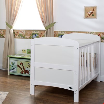 Great features at a great price; the Grace Cot Bed from Obaby will last from birth and beyond! With 3 varying base heights, as your baby continues to grow, learning to sit and stand, the mattress base can be lowered, ensuring they're kept safe and sound as they start to gain confidence. And with the addition of teething rails, their tiny little teeth are protected too! Designed to be convertible, simply remove the fixed sides and the top foot and headboard sections to transform your cot to a junior bed. So when their baby bed has been outgrown the transition is made easier and less daunting for them. Made from solid wood and finished in white, whether you're having a little man or miss, finding bedding and accessories will be a doddle! Also available as a 2 piece and 3 piece set - including a matching changing unit and wardrobe, furnish the whole nursery with the gorgeous Grace collection!