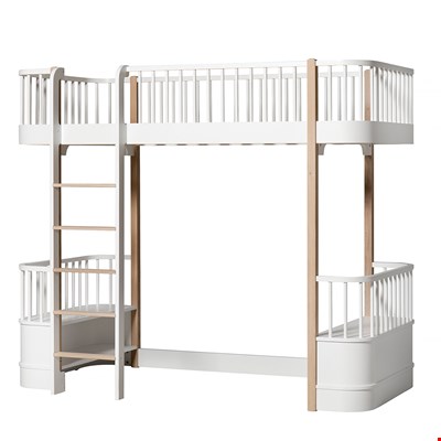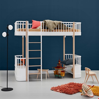This Children's Luxury High Loft Bed in White with Oak legs is a timeless piece from Oliver Furniture's Wood collection and will look stunning in any bedroom adding a touch of Scandi style. Made in Denmark and designed for the slightly older child, there is plenty of space underneath this high sleeper bed to create a destination for relaxing, studying or reading; they can then climb the ladder to bed and sleep soundly and safely thanks to the high, tram top style sides. The rounded, organic edges of this high sleeper would suit a classic or contemporary themed kids bedroom and the benches have a handy storage area under each one to pack away any clutter or fill with books. The area under the bed can be supplemented with floor cushions, rugs or a table for a truly unique space for your child to make their own - why not check out the rest of the Oliver collection available at Cuckooland? If you need extra sleeping space, this design also comes in a bunk bed version.