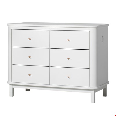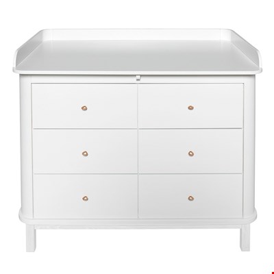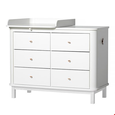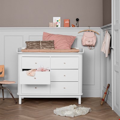 The simplistic design of the Contemporary Wood Chest Of Drawers from Oliver Furniture combines practicality with style, making an ideal choice if you are looking for contemporary nursery furniture. The six spacious drawers offer up plenty of room to house all your kiddies bits and bobs and are mounted on high-quality rails with a soft close function for added safety so no little fingers will get trapped! Manufactured in Denmark from responsibly sourced wood, the simple Scandinavian design will suit a variety of interior styles and would be a gorgeous addition to any nursery; seeing them through their childhood and beyond. With the optional extra of the small or large changing table top, you can create the ultimate baby changing station. With plenty of storage space, it's the ideal place to change your little ones nappy and means you can keep all those essentials close to hand. When no longer needed the changing table can be easily removed leaving you with a lovely chest of drawers.