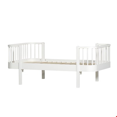 This wonderful Luxury Wood Toddler Bed in White, from Oliver Furniture, has a beautiful Nordic design; part of their Wood collection, its timeless detailing dictates the quality of this junior bed with no compromise in style and versatility. A perfect introduction into the grown up world of the big bed, the curved corners and elegant design are reminiscent of 1950's Scandi style. This beautiful junior size bed isn't all about the style, it's also fantastically practical - by buying the extension kit you can turn this first bed into a full-size adult single bed, extending its life as your little one outgrows their furniture. You can also add a bit of extra protection from any bumps in the night by fixing an additional bed guard to the bed, this is available to buy as an optional extra, along with a super under bed drawer should you require a bit of extra storage for spare bedding or even a bed for the teddies!