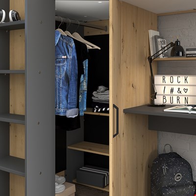 An ideal option for any teenagers room, the Grayson High Sleeper with Desk and Wardrobe from Parisot has everything you could need! With plenty of storage space, it's perfect for cramped bedrooms. Featuring a corner wardrobe fitted with a hanging rail and shelves, your youngster will have no trouble keeping their room spick and span (or hopefully at least!). The desk beneath will make a wonderful spot to catch up on that homework or to create a great gaming set-up. Offering up somewhere to sleep, somewhere to relax and somewhere to do that dreaded school work this high bed with desk will be superb in any kids room.