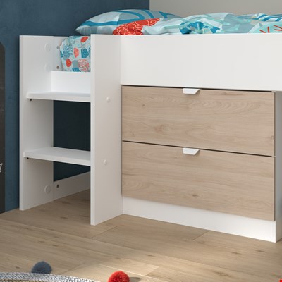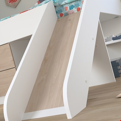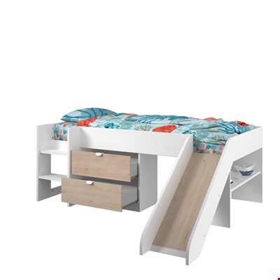 Bring some playground fun into you kiddies room with the Parisot Tobo Mid Sleeper with Slide. Not only will this bed be the perfect place for your youngster to rest their head but each morning they can start the day by sliding out of bed into a day full of fun! With two large drawers, there will be plenty of space for PJs, teddies and toys everything you need for a perfect nights sleep. With its white and wood finish, this gorgeous bed will fit into a whole host of themed bedrooms everything from under the sea to fairground fun. If only they made adult beds with slides!