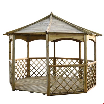 The Buckingham Garden Gazebo with its striking octagonal structure is the perfect way to extend your entertainment area into the garden. Whether you fill it with cosy garden furniture or a dining table and chairs it will be the ideal retreat to catch up with friends over a glass of wine or relax with the family. Beautifully crafted from high quality FSC® certified softwood in a natural timber finish gives you the option to paint or stain it to compliment the surroundings and add your own personal flair. The wood has been pressure treated meaning it is protected against rotting allowing you to enjoy the gazebo for years to come.