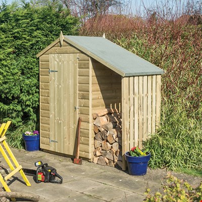 The Oxford 4 x 3 Garden Shed & Log Store with Lean To Roof by Rowlinson is a perfect addition to any garden or patio area in need of a storage solution. Whether it's to store garden equipment or furniture this garden shed is the ideal place to keep them safe and dry with the weatherproof mineral roofing felt and the addition of a lean to is ideal for storing logs. The traditional apex roof allows plenty of headroom meaning no awkward hunched shoulders. Manufactured from FSC® certified timber in a natural finish and with the wood being pressure treated means it is protected against rotting to ensure the shed will last for many years.